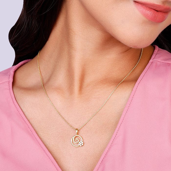 The Inspiration: The Golden Spiral Keepsake Pendant With Link Chain draws from nature’s perfect symmetry and celebrates the harmony found in the spirals of galaxies. The Design: This golden pendant features a golden spiral adorned with a dazzling zircon flower. 925 Silver With Gold Plating Perfect for sensitive skin The pendant size is 43 cm and the adjustable chain is 5 cm Motif Height: 2 cm, Width: 1.4 cm Comes with the Nikrish Jewellery kit and authenticity certificate Content:Â P endant Net Qty- 1 unit Styling Tip: Pair this pendant with a V-neckline and let it take you centre stage!