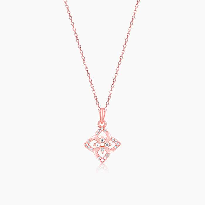 The Inspiration: The Rose Gold Double Rosette Pendant with Link Chain is inspired by the love that gives us an intense feeling of deep affection. The Design: The Rose Gold Double Rosette Pendant is shaped in a star-like design with elegant zircon stones embedded throughout. 925Â Silver with Rose Gold plating Pendant Dimensions: 2.4 cm x1.6 cm The length of the necklace is 43 cm with a 4 cm adjustable portion Hypoallergenic – Perfect for sensitive skin Comes with the Nikrish Jewellery kit and authenticity certificate Net Qty- 1 piece Styling Tip: Style this with a white floral midi dress.
