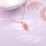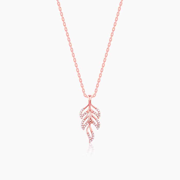 The Inspiration: This elegant pendant is perfect for your formal attire. Wear it alone or stack it with other pendants for that fashionista look. The Design: This rose gold pendant with a link chain features a leaf motif, studded with zircons. Celebrate the timeless beauty of Indian textiles with Nikrish’s latest ‘Magic of Tradition’ collection. Wear and celebrate tradition, anytime. 925 Silver with Rose Gold Plating Perfect for sensitive skin Length of Chain: 44 cm + 5 cm Adjustable Motif Height: 2.46 cm, Width: 1.1 cm Comes with the Nikrish Jewellery kit and authenticity certificate Content:Â P endant with link chain Net Qty- 1 unit Styling Tip: Style this with your indo-western outfit.