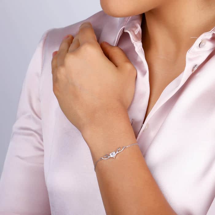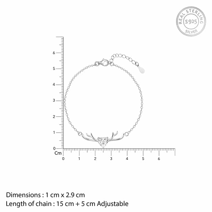 The Inspiration: The Silver Deer Heart Bracelet is inspired by the warm feeling we have when surrounded by our loved ones who make us smile. The Design: This adjustable silver bracelet has a deer motif which lends it an adorable look. 925 Silver Perfect for sensitive skin Motif Size: Height – 1 cm, Motif Width – 2.9 cm The length of the bracelet is 15 cm with a 4 cm adjustable portion Comes with the Nikrish Jewellery kit and authenticity certificate Content: Bracelet Net Qty- 1 unit Styling Tip: Style this bracelet with a little black dress.