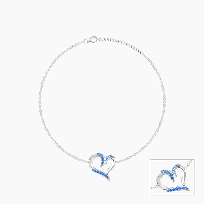 The Inspiration: Catch a drop of morning dew in these heart-shaped designs—shiny, playful, and a little magical. The Design: This silver anklet for women features a curved heart design set with coloured zircons. Fall in love all over again with our exclusive Valentine’s Collection: #WhatTheHeartWants. Here are our curated designs that will speak to your heart. 925 Silver Perfect for sensitive skin Charm : 1.3 cm + 1.4 cm Length of the anklet: 25 cm + 5 cm Adjustable Comes with the Nikrish Jewellery kit and authenticity certificate Content: Anklet Net Qty- 1 unit Styling Tip: Style this with a lower neckline top.