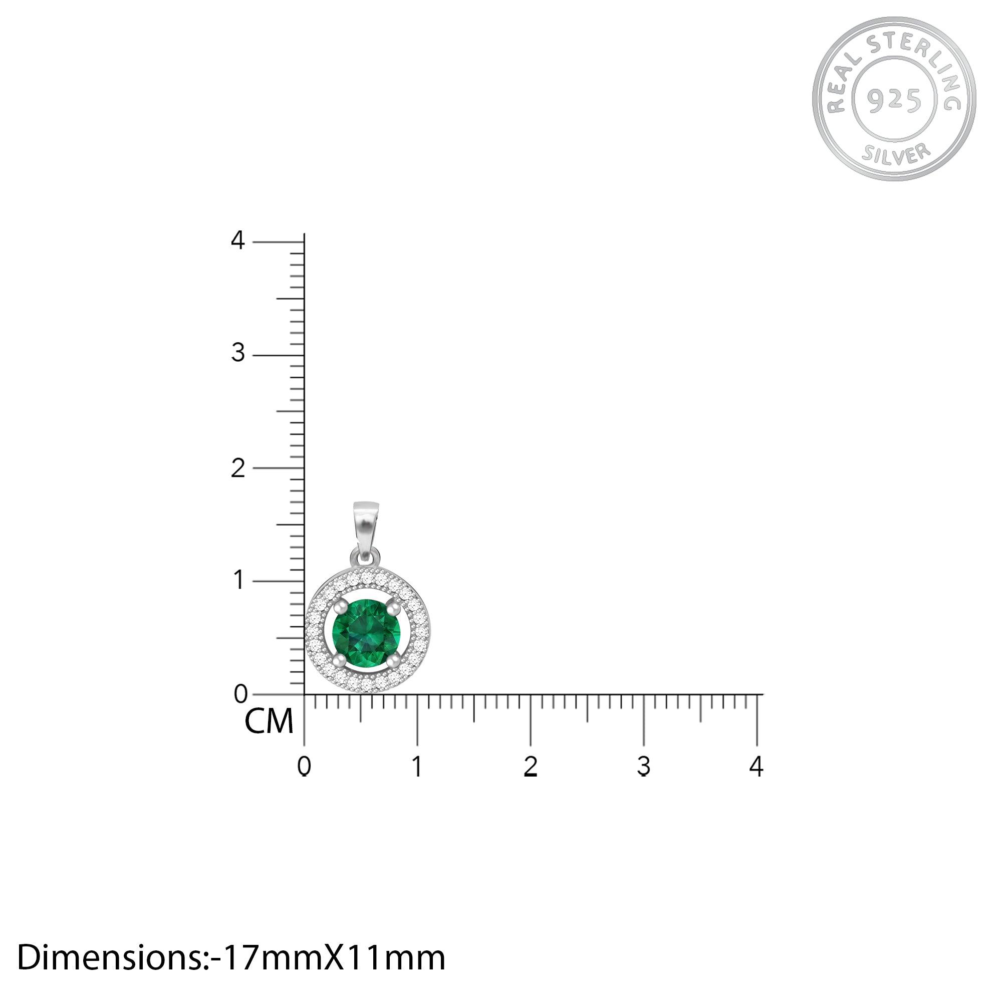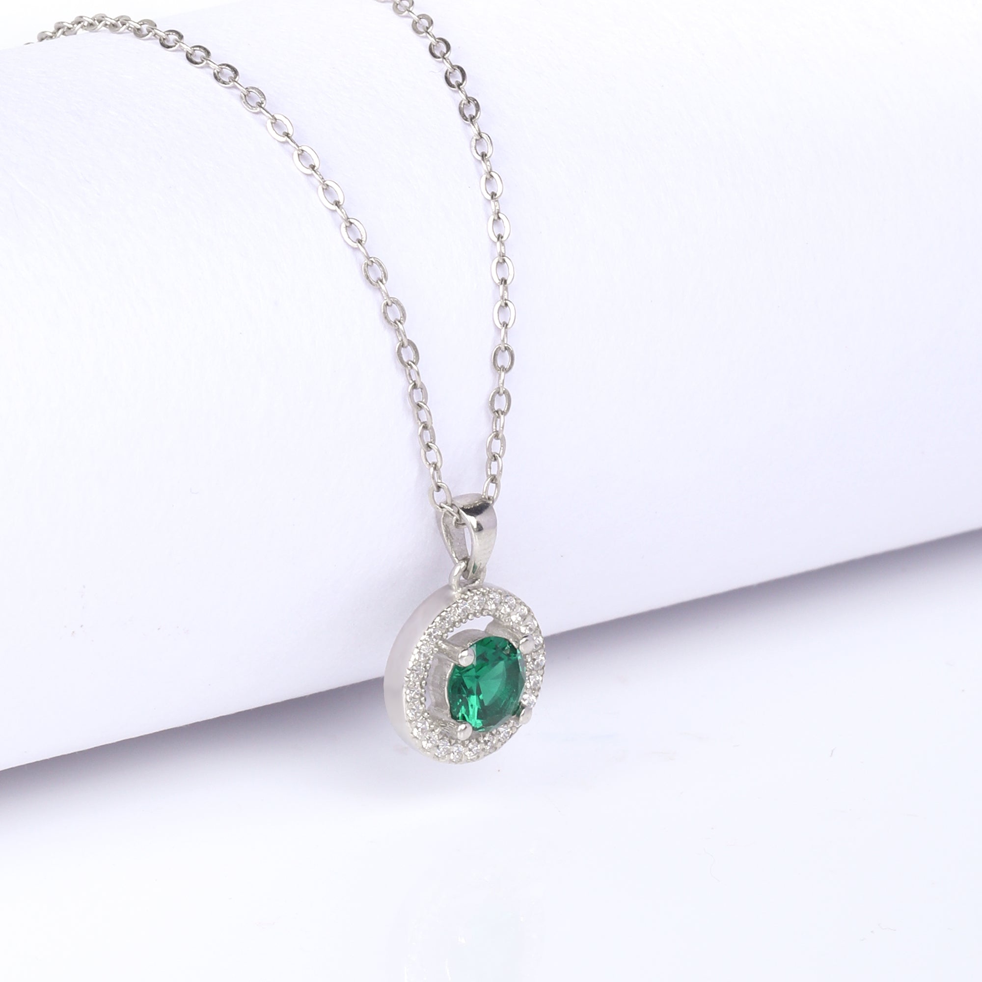 Silver Forest Green Shining Halo Pendant With Link Chain