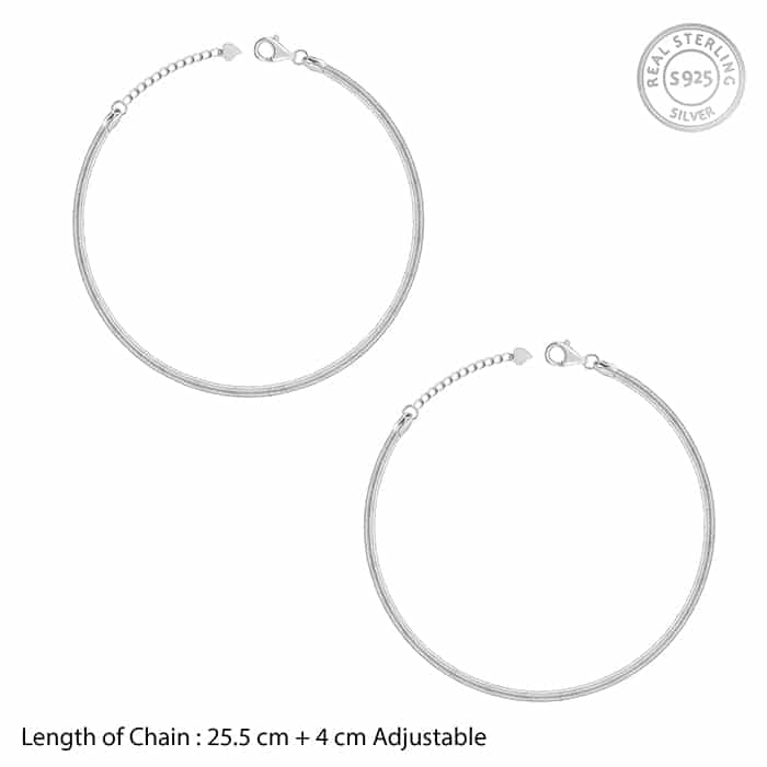 The Inspiration: Add rhythm to your steps with a silver anklet that shines like no other. Get ready to mesmerize the world! 🎶 The Design: This silver anklet for women has a plain design. 925 Silver Perfect for sensitive skin Length of the anklet: 25.5 cm + 4 cm Adjustable Comes with the Nikrish Jewellery kit and authenticity certificate Content: Anklet Net Qty- 1 unit Styling Tip: Team this up with an everyday outfit.