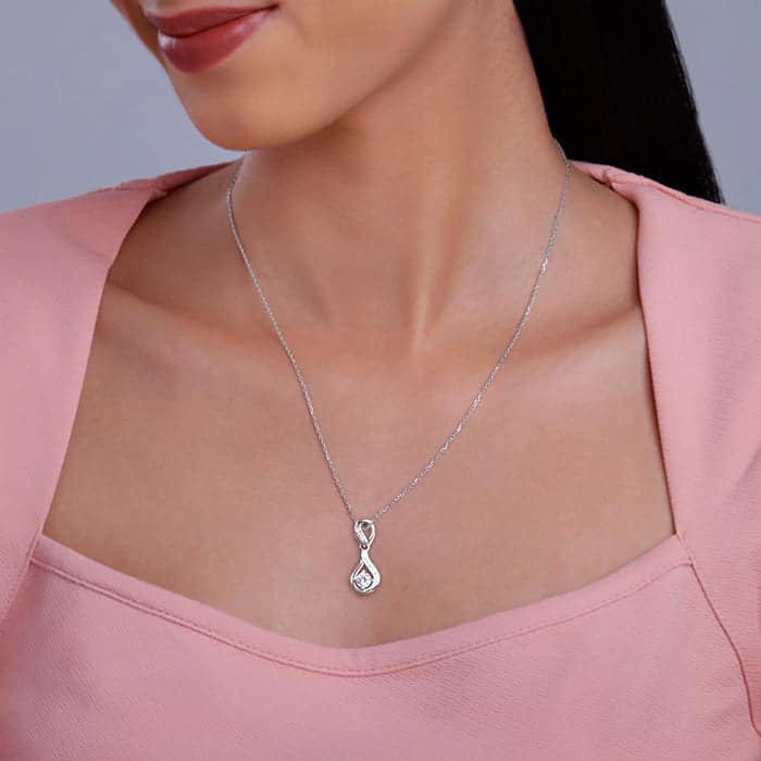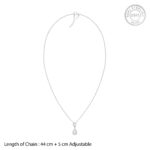 The Inspiration: Flaunt yourself with grace that outshines the moment. Because timeless beauty begins with a single, shining detail. The Design: This silver necklace for women features a teardrop-like outline design. One side of the silver framework is studded with zircons. A larger, round cut zircon is set at the base of the teardrop shape. 925 Silver Perfect for sensitive skin Motif Height: 1.9 cm, Motif Width: 0.75 cm Length of Chain: 44 cm + 5 cm Adjustable Comes with the Nikrish Jewellery kit and authenticity certificate Content: Necklace Net Qty- 1 unit Styling Tip: Style this with silver studs.